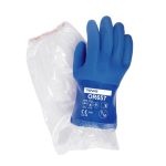 – ถุงมือเคลือบ PVC สีน้ำเงิน มีผิวสัมผัสหยาบพิเศษ ช่วยหยิบจับชิ้นงาน ไม่ลื่นหลุด