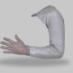 – ข้อมือเป็นขอบรัดปริงยืด-หดได้ มีการหุ้มสแตนเลส 2 ชั้นเพื่อป้องกันการดีด-เกี่ยวใบมีดของสปริง ปลายยาวถึงข้อไหล่
