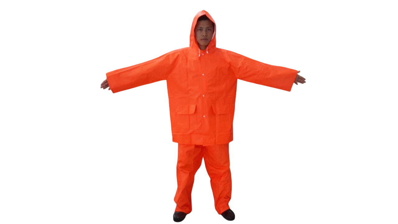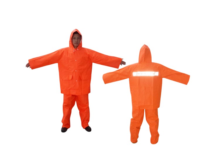 ชุดกันฝนส้ม เสื้อ-กางเกง มีแถบสะท้อนแสง 1 แถบด้านหลัง