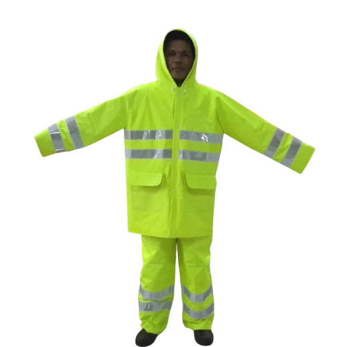 1. ชุดกันฝนสีเขียว เสื้อ-กางเกง มาพร้อมแถบสะท้อนแสง 2 แถบรอบตัวและรอบแขน