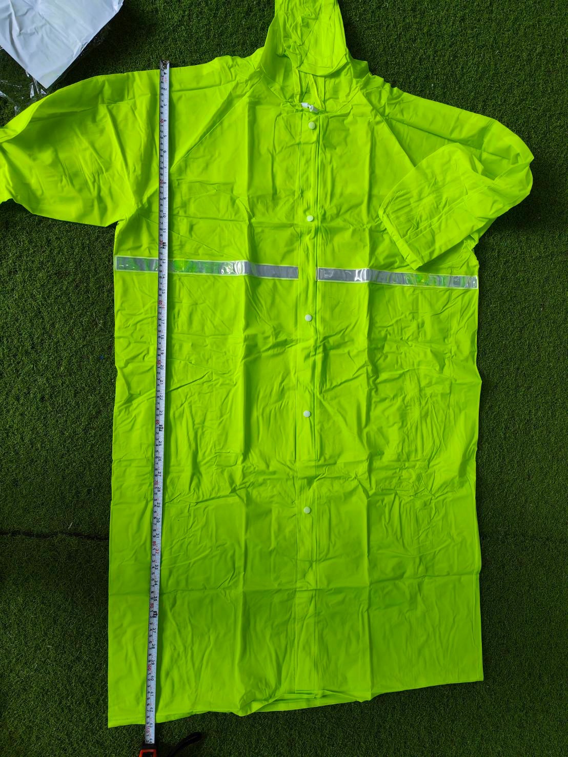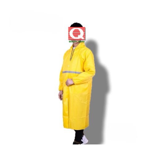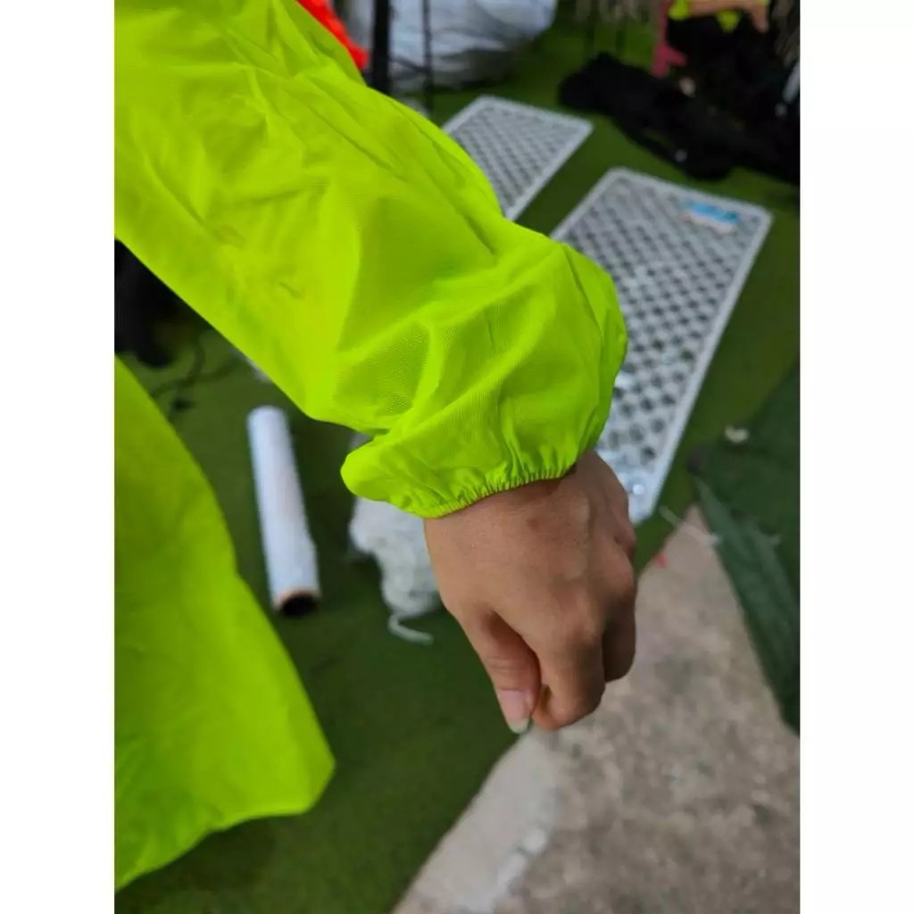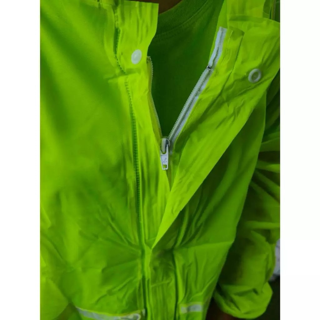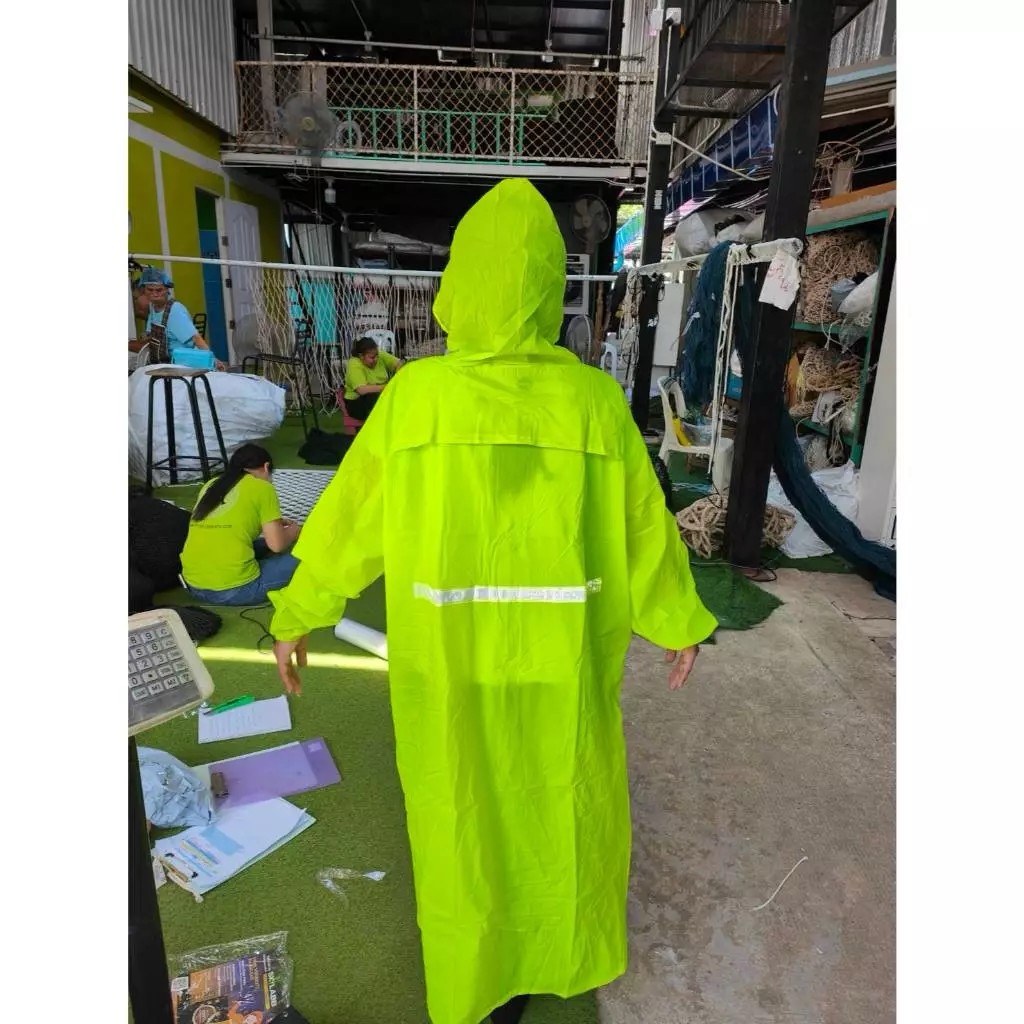 ชุดคลุมมีฮู้ดกันฝนสีส้ม/ดำ/เขียว/เหลือง มีแถบสะท้อนแสง 1 แถบด้านหน้า-หลัง