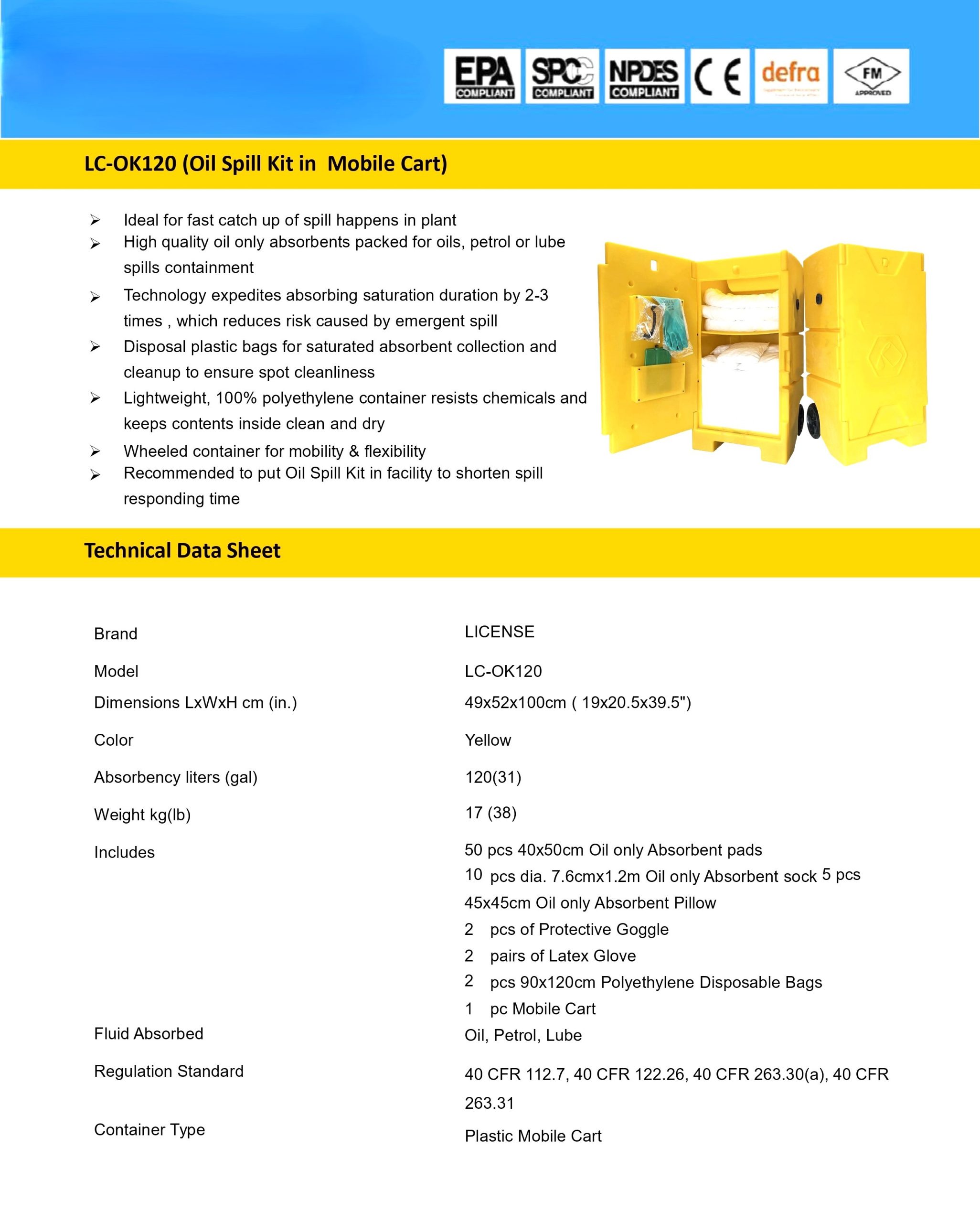 Oil only Absorbent Spill Kit in Mobile Cart รุ่น LC-OK120 (31Gallon)