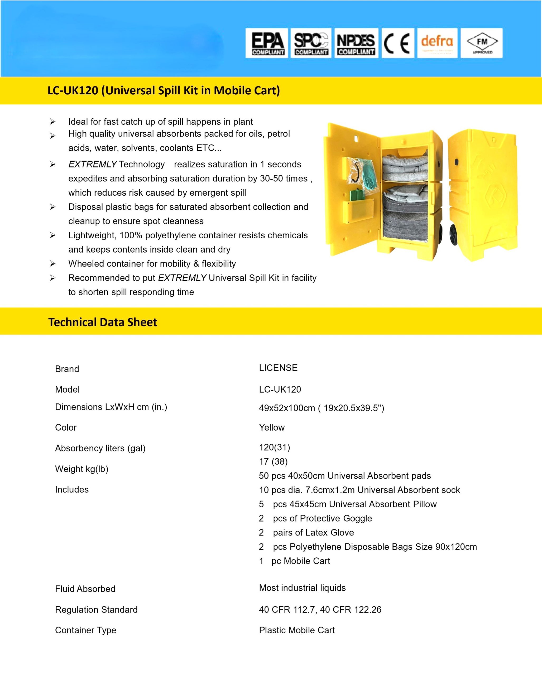 Universal Absorbent Spill Kit in Mobile Cart รุ่นLC-UK120 (31Gallon)