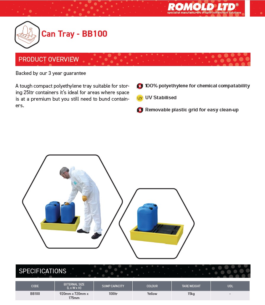 ฐานรองแกลลอน/ขวดบรรจุเคมีขนาดเล็ก (2-4ถัง) ROMOLD Can Tray รุ่น BB100