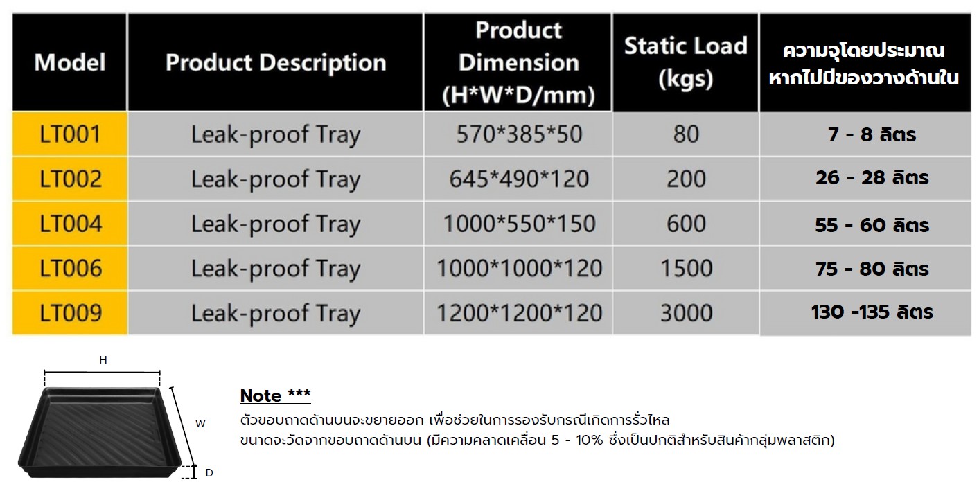 - ถาดป้องกันการรั่วซึมนี้สามารถรองรับถังของเสียตั้งแต่ขนาด 5 ลิตร – 200 ลิตร