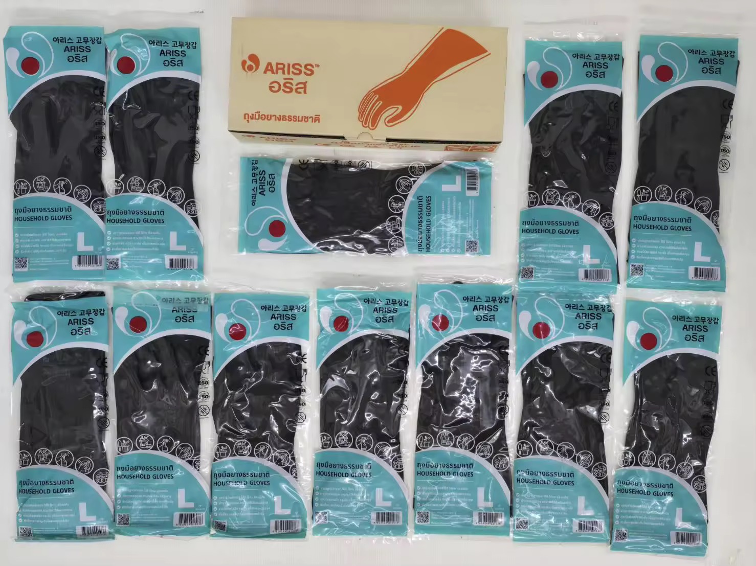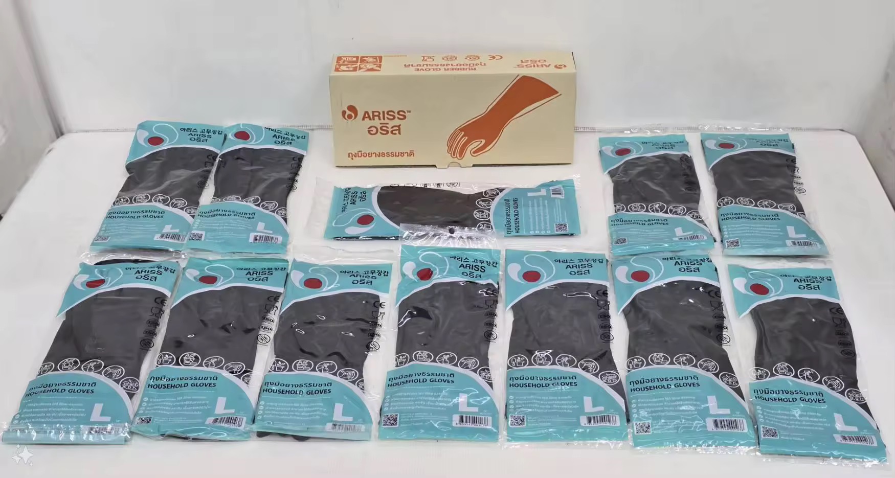 ถุงมือยางธรรมชาติ Ariss ถุงมือแม่บ้าน 1คู่/ห่อ