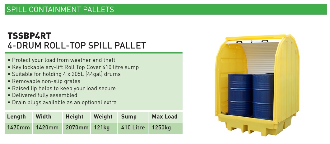 พาเลทรองสารเคมีแบบมีฝาปิด ROMOLD รุ่น BP4RT (TSSBP4RT) รองรับ 410 ลิตร(L )(4ถัง) 147x142x207 ซม. สีเหลือง