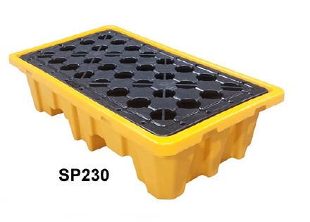 พาเลทรองสารเคมี ป้องกันการหก-ล้นของสารเคมี 150L (2ถัง) 130x68x30 ซม. สีเหลือง