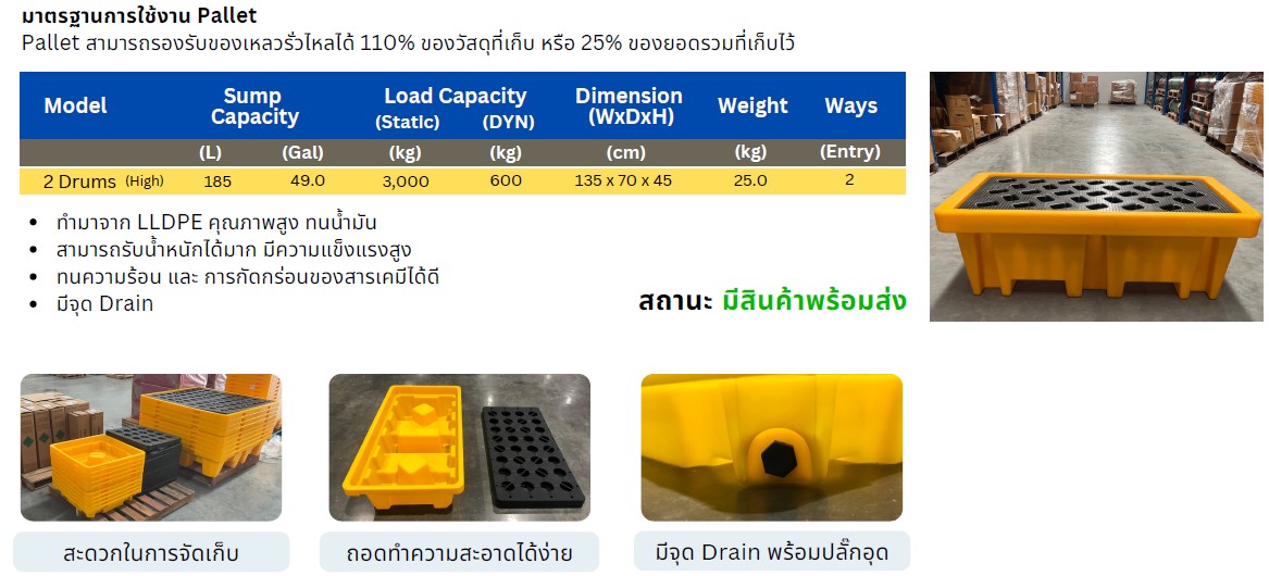 – รองรับสารเคมีหกรั่วไหลได้ 150 ลิตร/ 40GAL