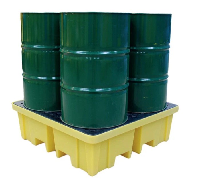 Manufactured from polypropylene 100%, Designed for safe and compliant storage of 4 x 205L drums, EPA compliant sumps in all spill pallets, Broadband chemical resistance including acids and caustics, DIBt Z-40.22-398 APPROVAL