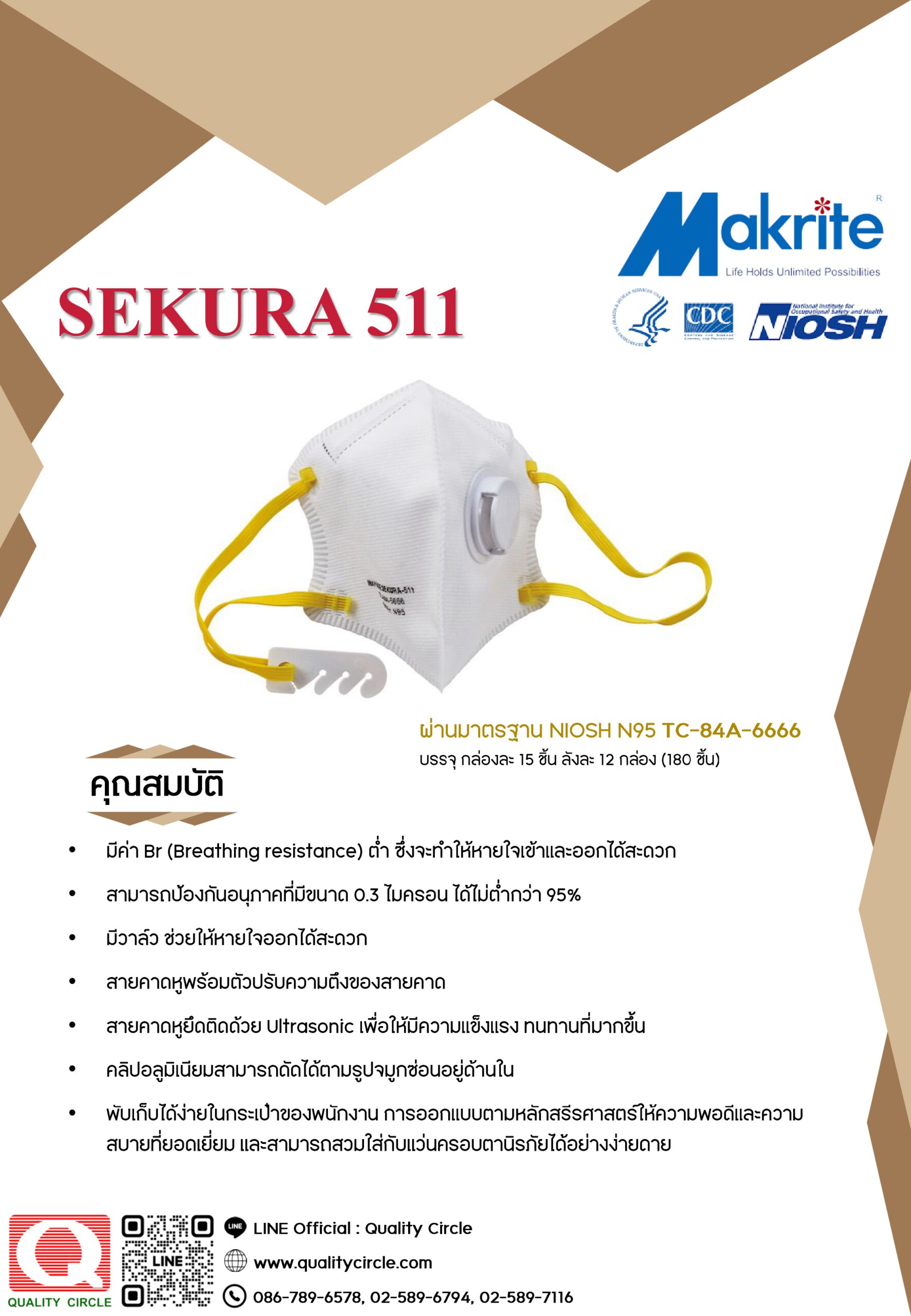 หน้ากาก N95 Makrite (มาร์คไรท์) รุ่น Sekura 511 มีวาล์ว
