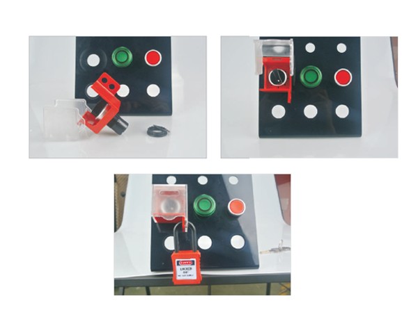 - ฝาครอบล็อคปุ่มกดฉุกเฉิน เพื่อป้องกันการกดปุ่มโดยไม่ตั้งใจ หรือใช้ในระบบ Lockout Tagout เพื่อความปลอดภัยขณะซ่อมบำรุง