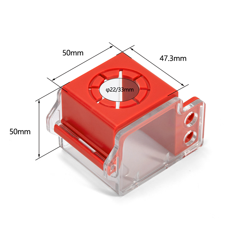 - ขนาด : ความยาว 50 มิลลิเมตร ความกว้าง 47.3 มิลลิเมตร ความสูง 50 มิลลิเมตร เส้นผ่านศูนย์กลางรูติดตั้งด้านใน 22 หรือ 30 มิลลิเมตร