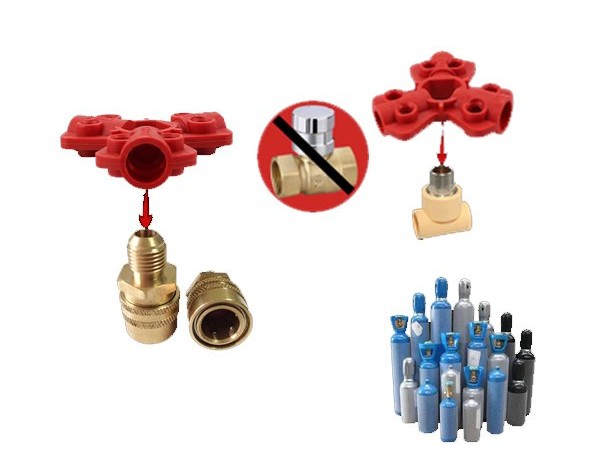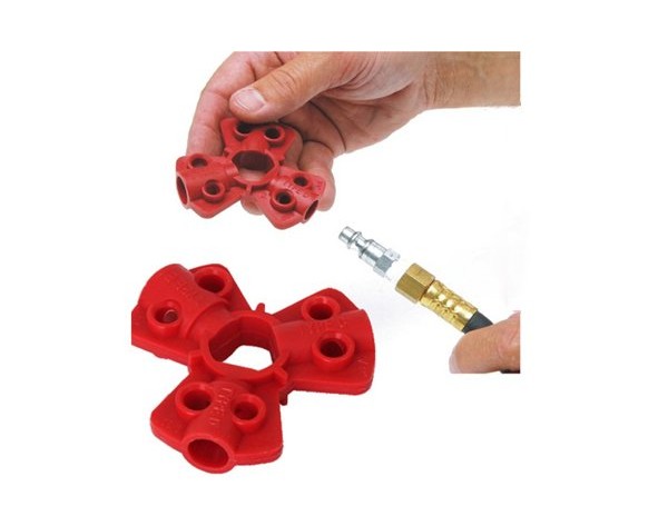 การใช้งาน : ไว้สำหรับล็อคหัวข้อต่อลม, ข้อต่อไฮโดรลิค โดยมีรูสำหรับใส่หัวล็อคได้ 3 ขนาด