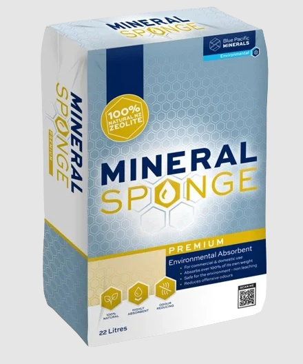 เม็ดแร่ซีโอไลต์ที่มีขนาดเฉพาะซึ่งสามารถดูดซับของเหลวได้มากถึง 75% ของน้าหนักตัวเอง ซึ่งทาให้สามารถใช้ Mineral Sponge ได้ในหลายพื้นที่ แต่ส่วนใหญ่จะใช้เป็นสารดูดซับสาหรับการรั่วไหลของน้ามัน/เชื้อเพลิงและสารเคมีเหลว