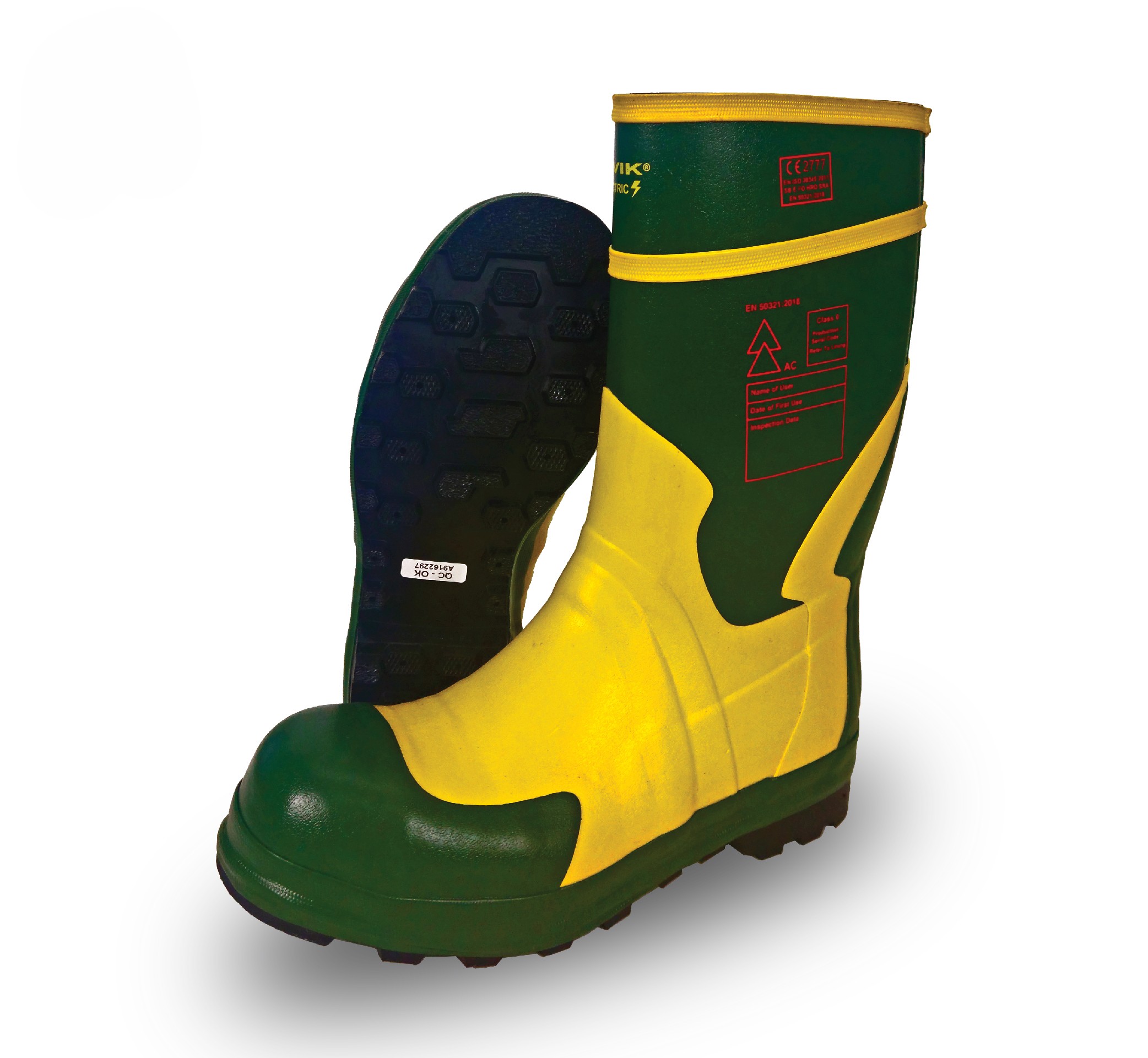 : Harvik : ยางแท้คัดเกรดหนาพิเศษ : ยางไนไตรล์สูตรเข้มข้น : เหล็กกันกระแทก 200 จูล : โพลีเอสเตอร์ชั้นในชนิดป้องกันไฟฟ้า : 11 x 30 x 33 cm : 2.5 kg. : ทดลองกับพื้นเปียกน้ำ ได้ถึง 5kV, พื้นแห้ง 37kV : พื้นทดสอบความร้อน 300 °C ได้ถึง 60 วินาที : CE, EN20345:2011, EN50321:2018, AS/NZS2210.3:2019, ASTM F2413-18, CSA Z195-14 |