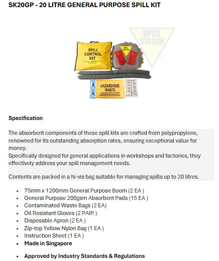 SK20GP – 20 LITRE GENERAL PURPOSE SPILL KIT