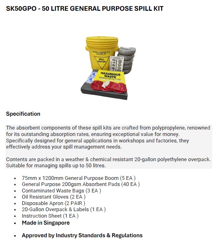 SK50GPO – 50 LITRE GENERAL PURPOSE SPILL KIT