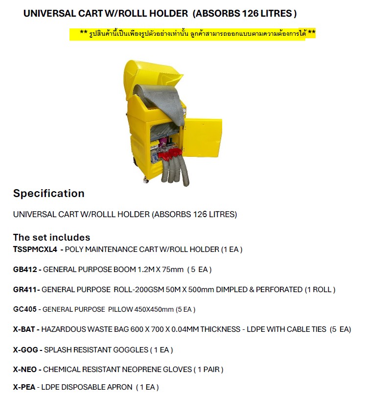 UNIVERSAL CART W/ROLLL HOLDER (ABSORBS 126 LITRES )
